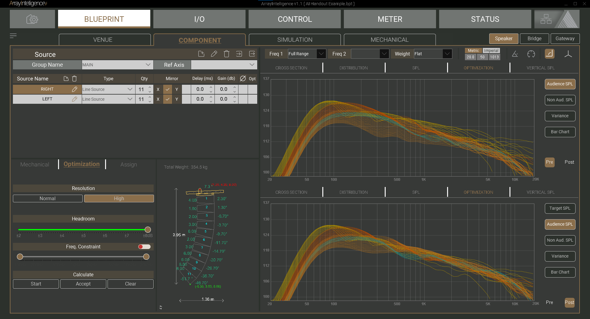 After placing virtual cabinets in your room design, different aspects of their behaviour may be simulated, including 2D and 3D SPL.